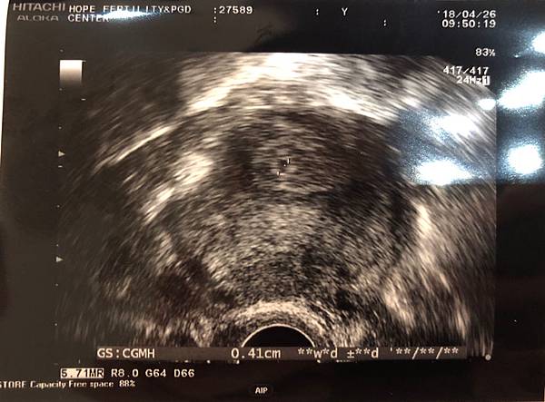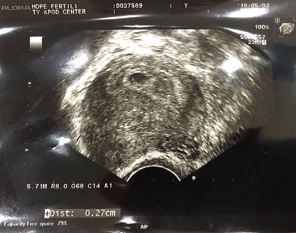 從植入到現在,R都因為出差所以不在身邊,真的很會挑時間,一出差就是2個月。今天我還是一個人到達診所。櫃檯的姊姊都已經可以記得進入療程的每位媽媽,其實要記那麼多的名字也真的很厲害。一到就是慣例的上廁所照超音波,在還沒揭曉答案前,我已經告知超音波技術員我的煩惱,一直很擔心子宮外孕。但是!!!!!今天,超音波一掃,沒有花多少時間,就有一個小小的胚囊乖乖的躺在子宮中間,喔天啊,我馬上說:『真的好險不是子宮外孕』。很像做了一個禮拜的雲霄飛車般,安全到達。