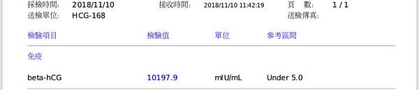 回到家,剛好收到聯合檢驗所的報告,打開報告傻眼耶,數值比2天前高了4倍,我當然是開心的,但是真的會在2天內多那麼多嗎?無限擔心耶。會不會是我這幾天很認真的跟寶寶講話,他聽到了我在信心喊話著,希望這是個穩定的開始。