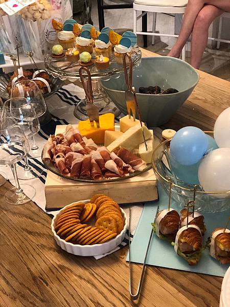 原本有點懶的辦baby shower,一方面是要籌劃,一方面是後期孕期真的容易累也無法久站久坐,但R覺得還是想要跟朋友分享喜悅。其實籌劃的部分很簡單,只要決定地點,佈置的預算,食物的預算,大概就完成了;佈置的廠商我是最早決定的,二話不說一定是找我最愛的花藝「Ciao巧偶」,因為婚禮已經合作過也變成了朋友,他們大概都知道我們喜歡的設計,交給他們我們什麼都不用想,而場地也是在告知大約人數及討論後由他們建議,畢竟他們辦過很多活動,了解的更多。最麻煩的地方大概是需要想邀請的人數吧,很擔心漏掉哪位比較親近的好朋友,最後算算也有40個人上下,對baby shower來說規模好像有點大,但因為R是個重朋友的人,每個人都想邀約,還必須阻止他請他要限制要求人數,不然場地要塞爆了。因為前往的賓客都會帶禮物,所以也要有個小小的回禮,網路上看了很多建議,我們最後選擇爆米花,等於”ready to pop”的意思,算有關聯性也滿有創意的伴手禮;因為要讓大家都有參與感,我製作了小卡片讓大家寫,也想了2個遊戲讓賓客一起玩,另外也訂了白酒讓前往的賓客飲用,畢竟怕場面太乾,酒應該是很好的助興品。