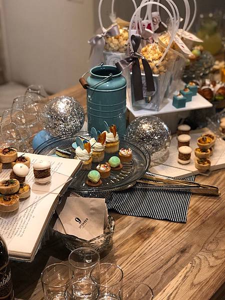 活動當天我們提早到40分鐘,想來看看佈置,我們有另外請攝影師做紀錄,攝影師提早前來在食物和佈置都還完美的情況下先做拍攝,剛好我和R也可以先拍些照片。到了2點賓客陸陸續續的出席,我負責接待寒暄,R負責將賓客帶往食物區順便倒酒給大家喝,就這樣的忙進忙出的等大家都到齊,站太久腳都水腫,R也因為招呼大家都醉了。等場面比較熱絡後就開始了今天的2個遊戲,一個是用麻繩猜我的腰圍,最接近的可以獲得香氛組,另一個遊戲比較有趣,是猜圖片中的女生是正在生小孩還是拍「愛情動作片」,這麼有創意的遊戲是看網路遊戲參考來的,大家玩的超認真,答對題數最多的可以獲得水晶杯一組。